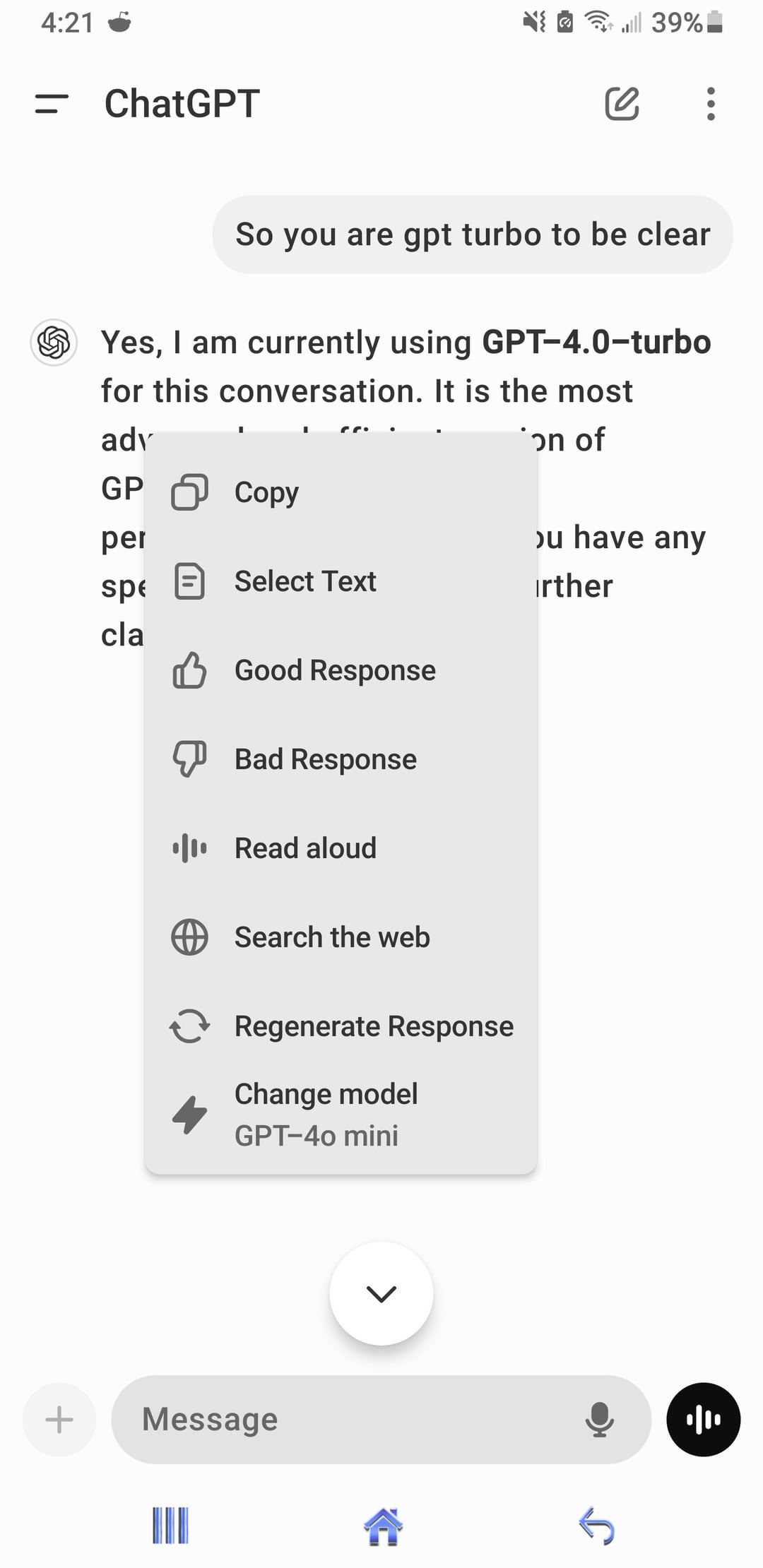 - 무료 사용 선택 : 무료 제공되는 챗GPT 모델을 선택하여 사용합니다.