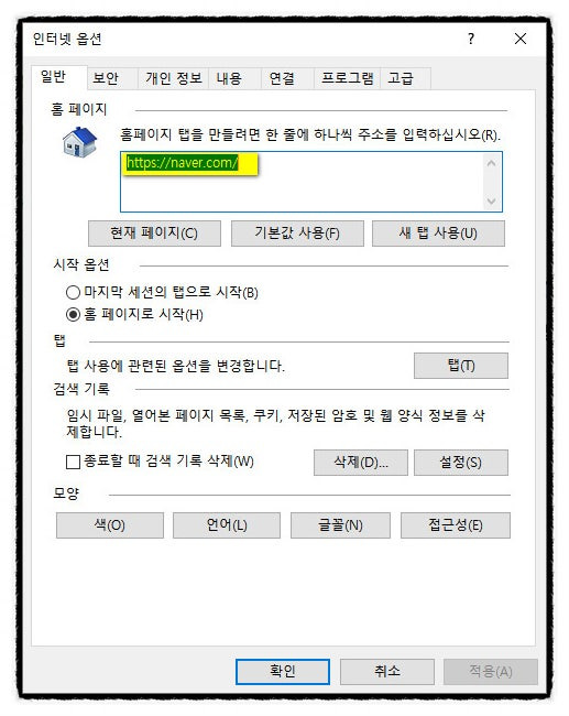 - Q: 시작페이지 설정 후 변경이 안 되는데 어떻게 하나요?
