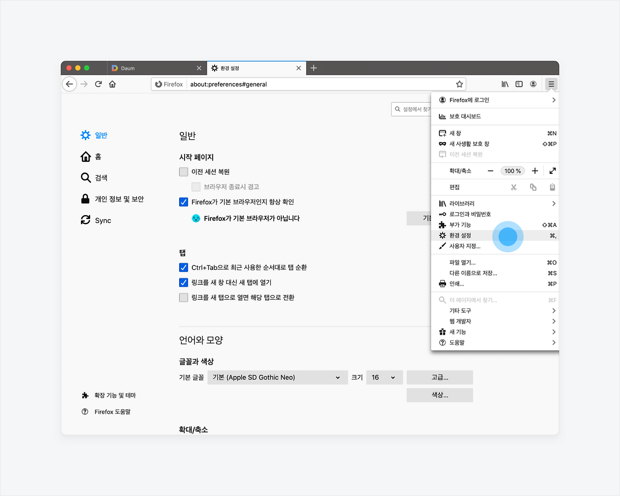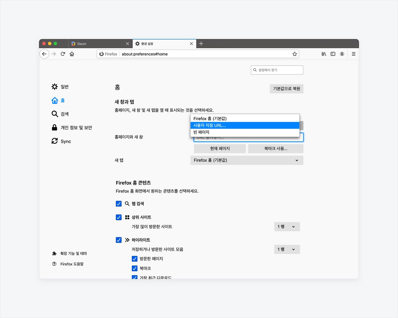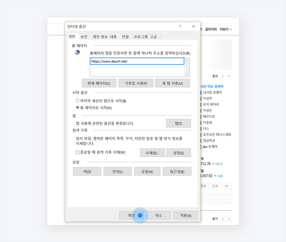 다음 시작페이지 설정 방법