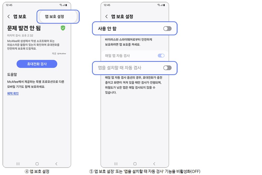 - 재설치 : 만약 '비활성화' 상태라면 '활성화' 버튼을 클릭하여 다시 활성화합니다. 만약 삭제된 경우, APK 파일을 다운로드하여 설치해야 합니다.